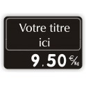 Etiquette en plastique ABS alimentaire de 2mm d'épaisseur disponible en 2 formats (90x60mm ou 100x70mm) avec impression haute qualité à l'encre couleur du décor. Le titre personnalisé est disponible en 2 polices d'écriture au choix. L'étiquette est livrée pré-percée pour recevoir des chiffres à picots (vendus en option et disponibles en bleu, blanc, rouge, noir ou jaune) et pré-imprimée avec l'unité de vente Prix EUR/Kg ou bien EUR/Pce.
